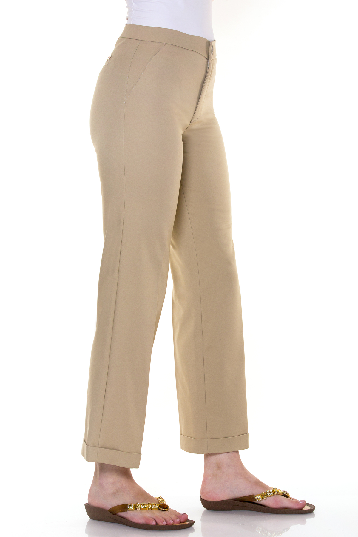 Pantalón recto en varios colores, con goma por el interior de la cintura y bajo vuelto, elástico.